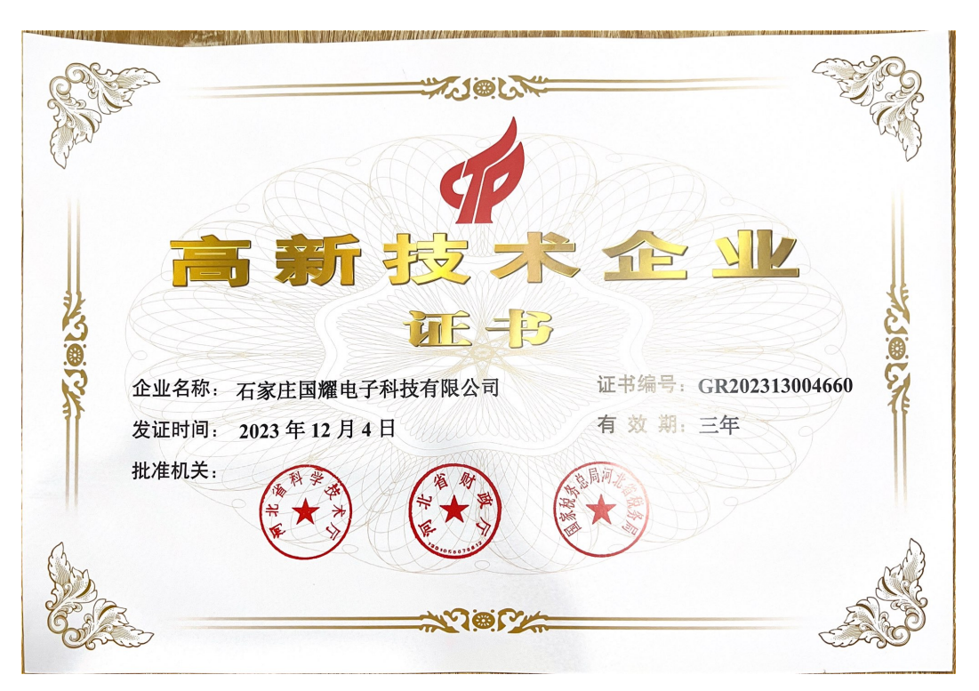 石家莊國耀電子科技有限公司成立于1998年,注冊資本1000萬元,位于石家莊市高新技術產業(yè)開發(fā)區(qū),是國家高新技術企業(yè)和軟件企業(yè)。